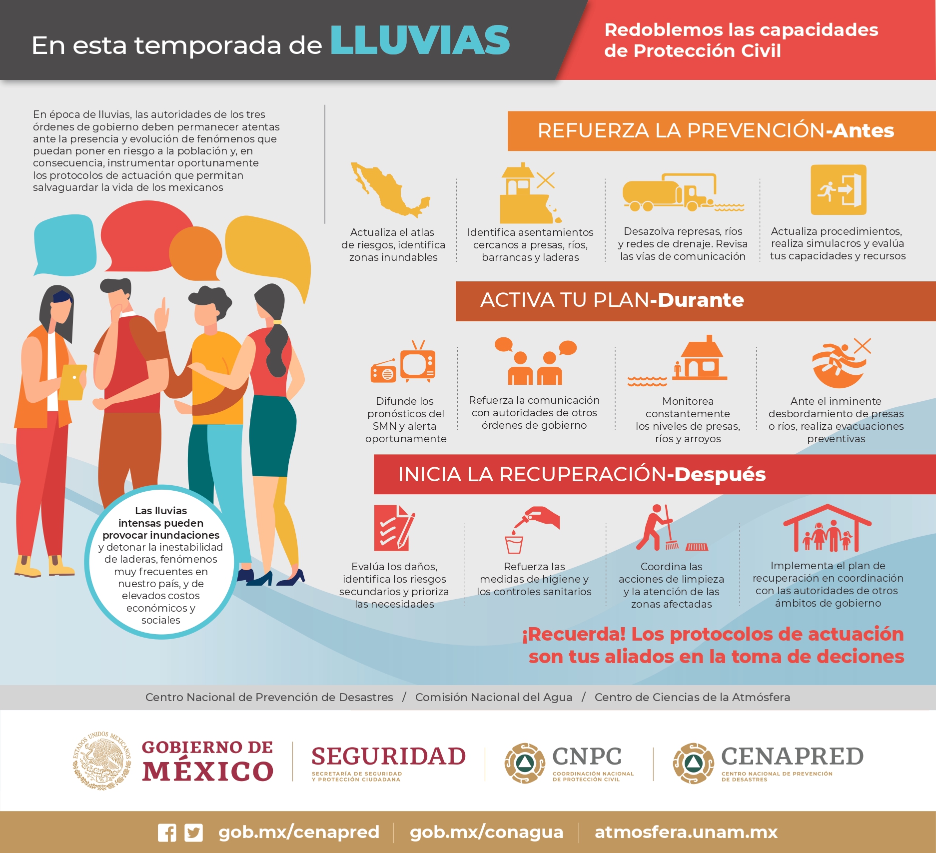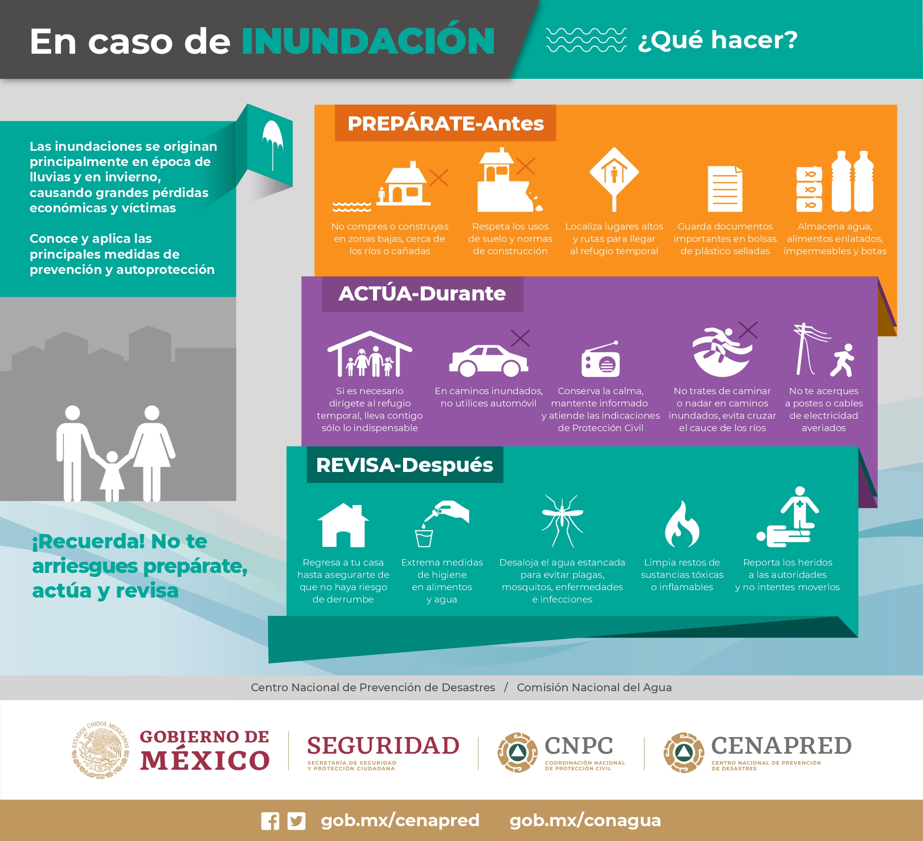 - POBLACIÓN EN GENERAL – Mantenerse informada sobre las condiciones meteorológicas en sus lugares de residencia, tener presente su plan familiar de protección civil y atender las recomendaciones del Sistema Nacional de Protección Civil.