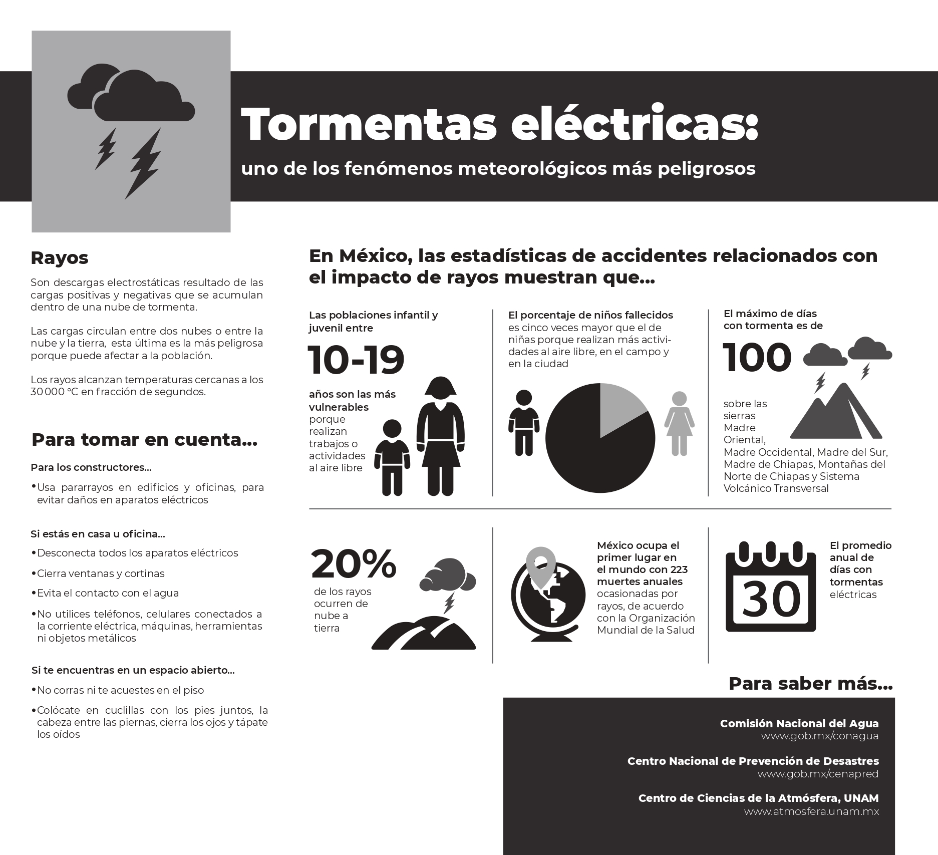 - En caso de tormentas eléctricas procure no utilizar equipos eléctricos y electrónicos, si se encuentra en el exterior procure buscar refugio en alguna edificación, si está viajando quédese en el interior de su automóvil.